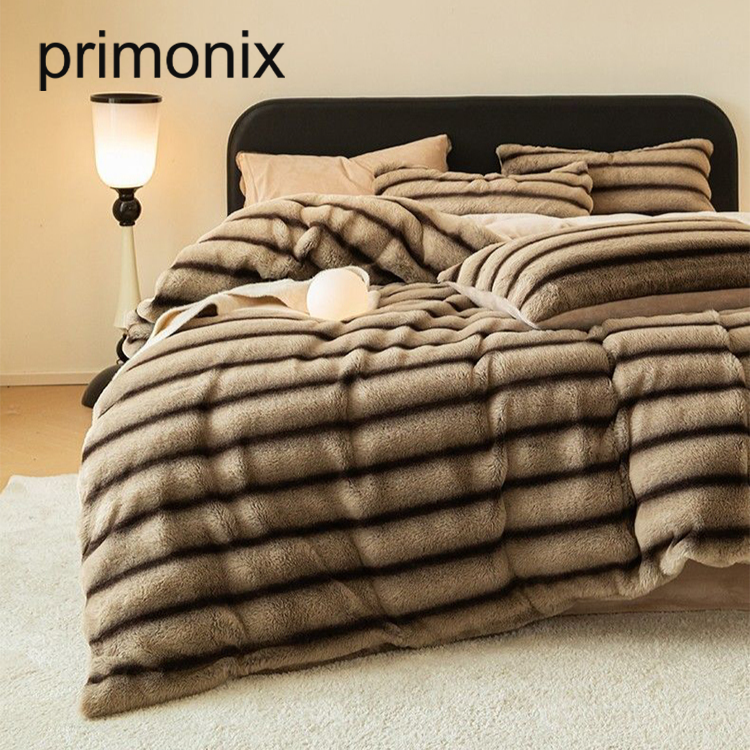 床品四件式條紋長絨保暖