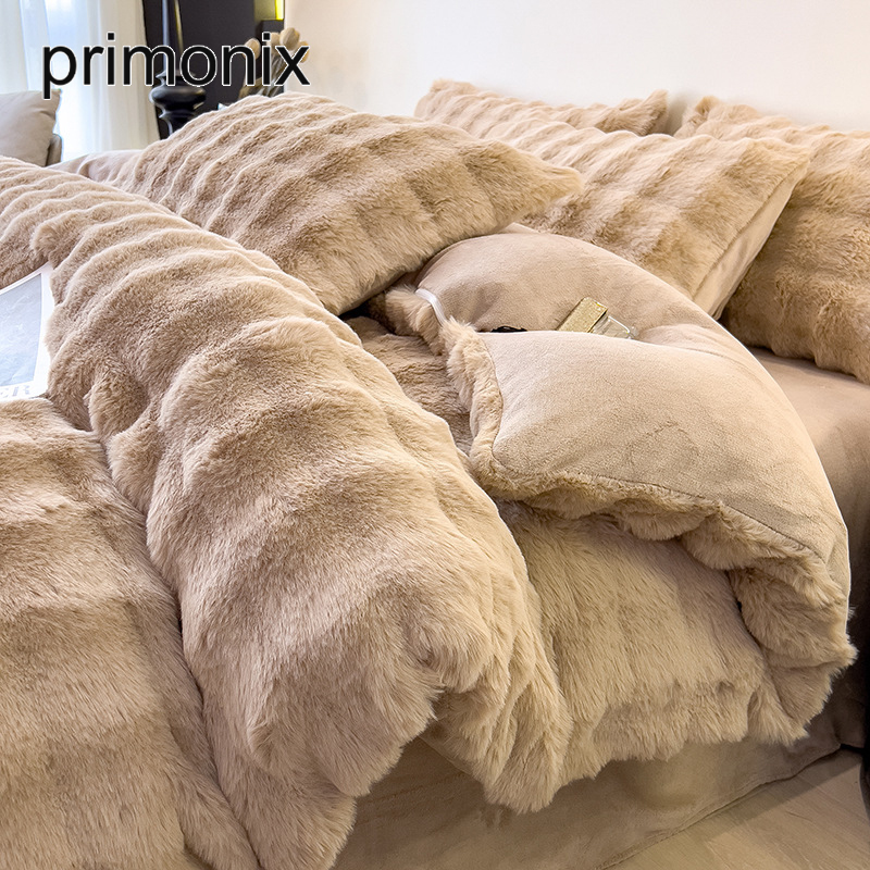 冬季兔子毛絨四件套