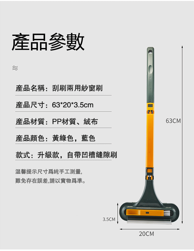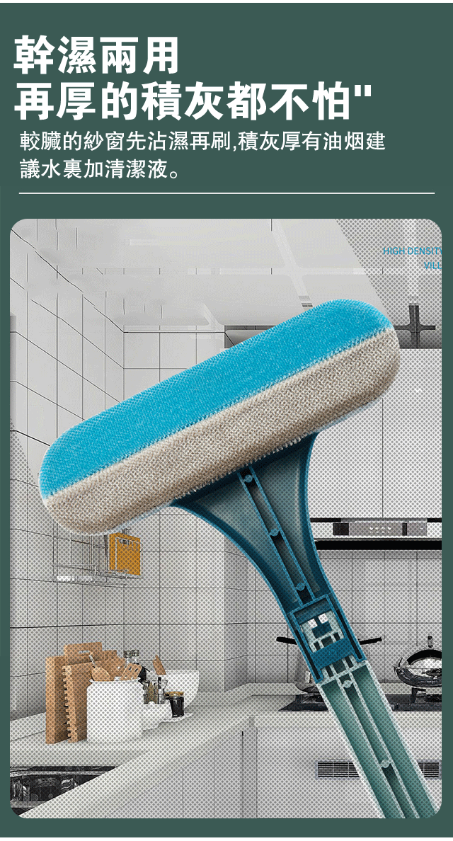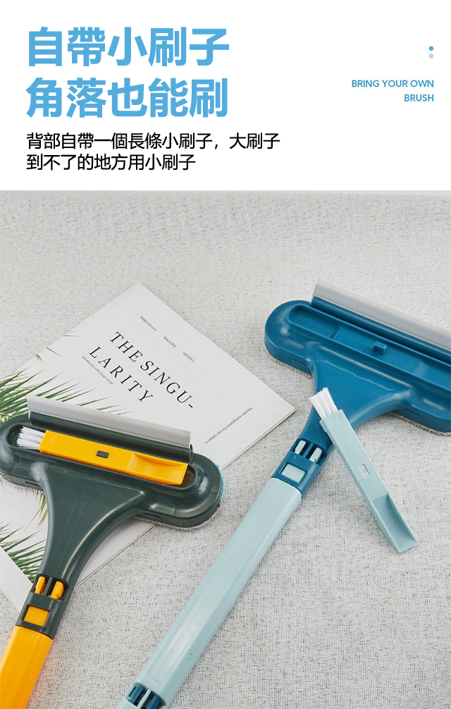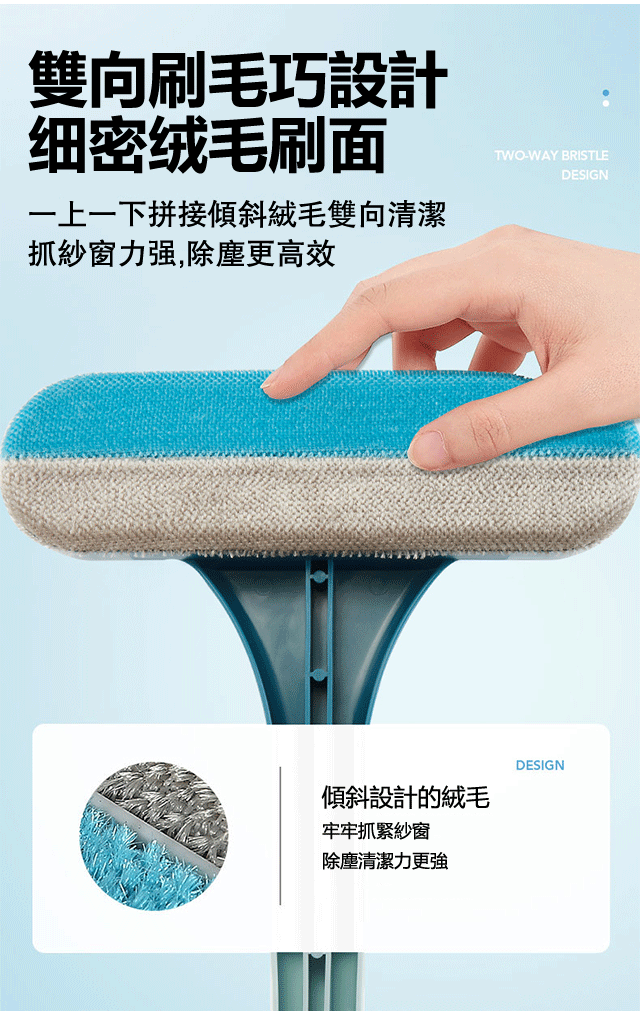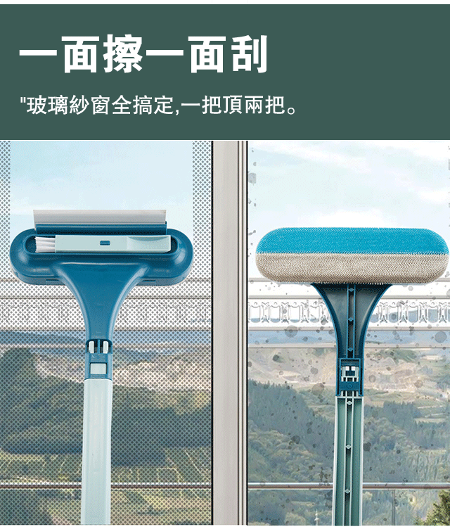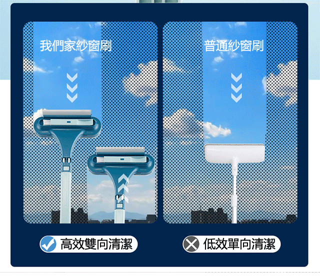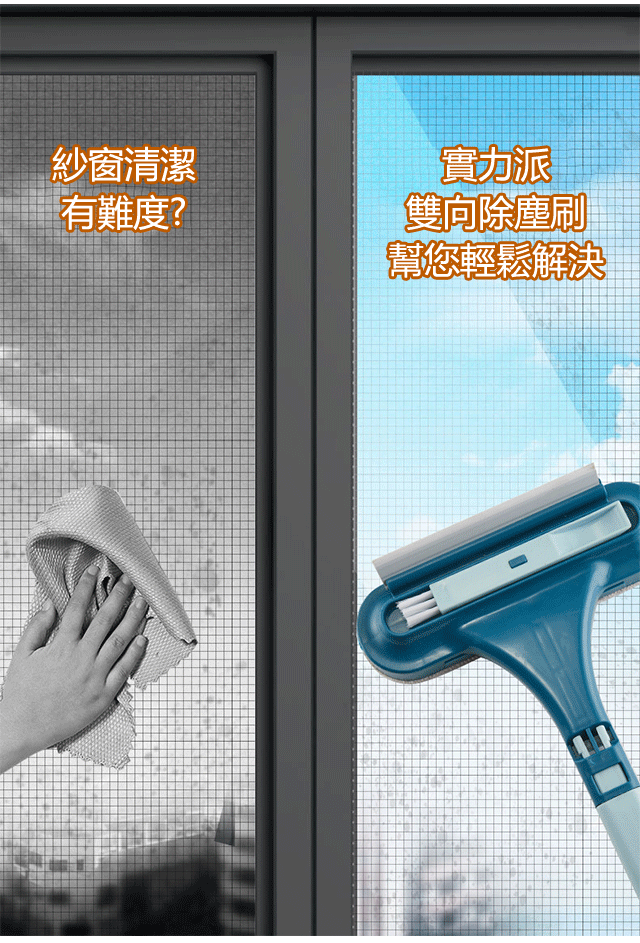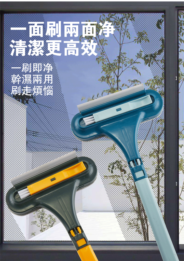 紗窗刷擦紗窗只需要擦一面,兩面灰塵都能擦到,擦幾下就乾淨了。它還能一面擦一面刮,用它清理鏡子就更輕鬆了